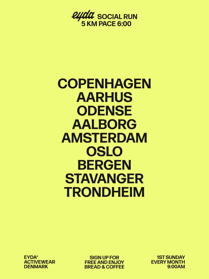 Everyone can participate in the EYDA Social Run - whether your running shoes have been well-worn or are brand new. For us, the most important thing is the camaraderie, and that together we can release a large dose of endorphins. That's why our front runners run at a social pace of around 6 min/km, but everyone can join. Whether you finish first or last, we offer pastries and a cup of coffee at the finish line.